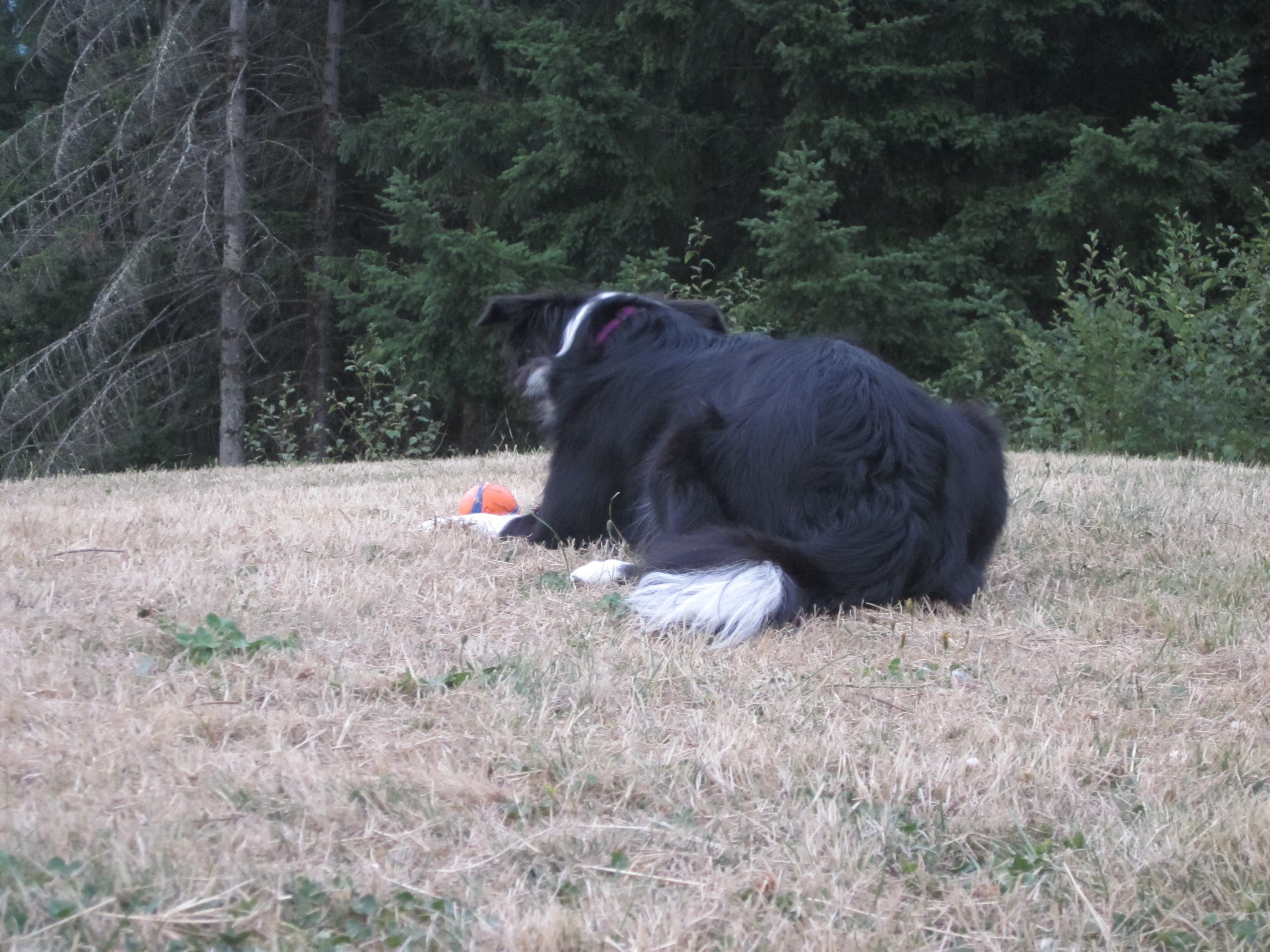 The other interesting thing that happened was Camm’s decision over what reward meant the most to her. After one particularly successful run with lots of good bits, we ran to the car to play – I thought – a game of tug with a favorite tug toy. But Camm ignored the tug toy in my hand, dipped her petite pretty little head into the toy bag and touched her nose to a beloved ball.
